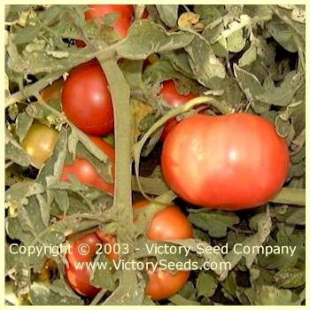 74 days, indeterminate — ‘Glamour’ is an early to mid-season, productive, regular leaf plant that sets heavy clusters of red, six ounce fruit that are almost globe-shaped, solid and crack resistant. It is a nice choice for canning but also deliver a tasty, classic, tart flavor for fresh eating.