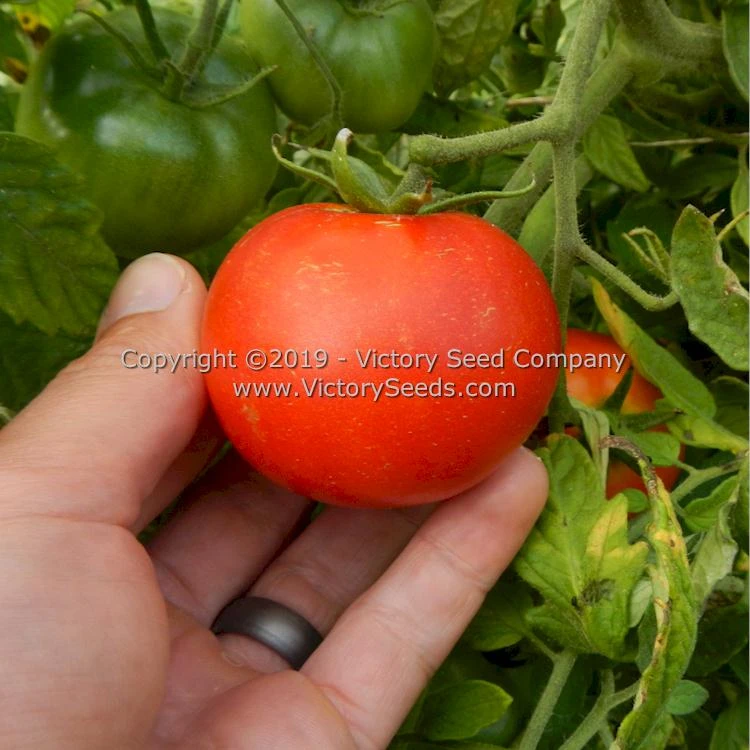 Bred by T. F. Ritchie and crew at the research laboratories of the horticulture division at the Dominion Experimental Farm in Ottawa, Canada[1] ‘Globonnie’ is a stabilized cross between ‘Livingston Globe‘ and ‘Bonny Best‘[2,3] and introduced in 1938. Our original seed sample was USDA GRIN accession number PI 121665. During our early grow outs, we did observe a small percentage of plants that produced larger, more oblate-shaped fruit. We will continue working to cleanup this variety over the coming years. Each packet contains at least 20 seeds.