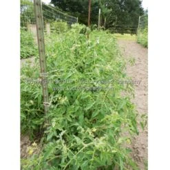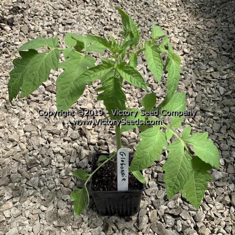 75 days, indeterminate — The regular-leaf plants of ‘Globonnie’ are vigorous and productive. Their fruit are deep-globe shaped, red colored, three to eight ounces each with a mildly tart, slightly sweet classic red tomato flavor. Excellent for fresh eating as well as processing.