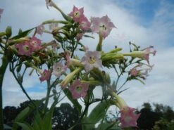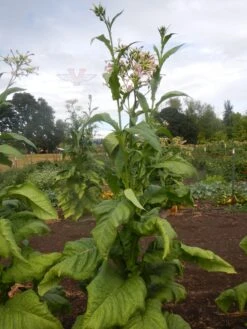 ‘Gold Dollar’ is a flue-cured type of tobacco, has pretty pink flowers, and was historically used for pipe and cigarette blending. It is early maturing making it a good choice for gardeners living in areas with shorter growing seasons.
