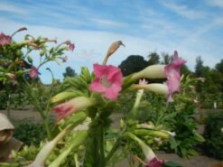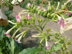 Classified as a “flue-cured” type tobacco, ‘Gold Leaf’ was historically used for cigarette blending. The plants grow to about forty-four inches tall when topped, or can reach six feet when allowed to develop its attractive pink flowers.