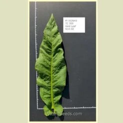 Its slightly undulating, puckered leaves are much longer than they are wide, with their widest point below their middle. Typical leaves are eight inches wide by twenty-four inches long. Our seed originated from USDA accession number PI 552643 and was grown for us by David Pendergrass from Tennessee.
