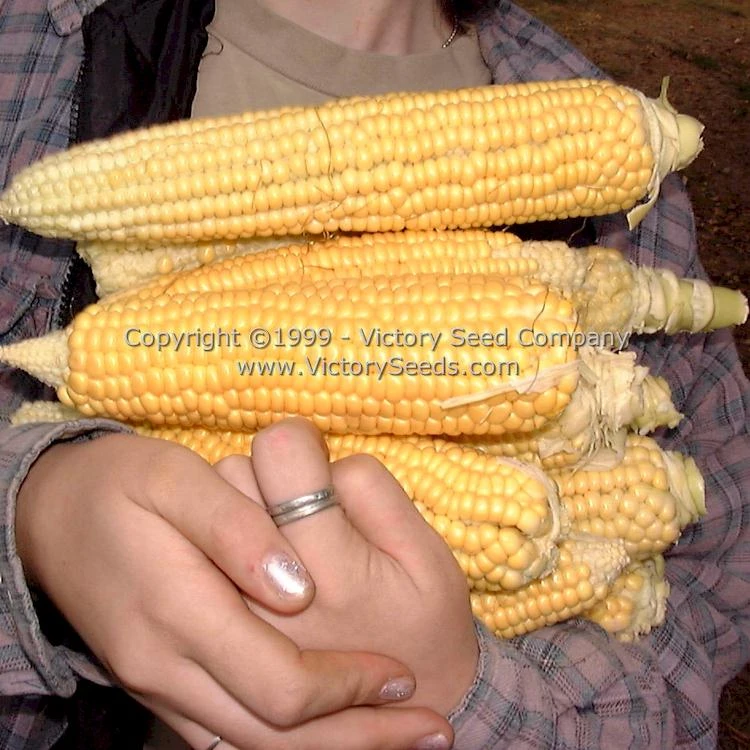 78 days — This is the old standard yellow sweet corn that has been the home gardener’s favorite since the beginning of the twentieth century. The plants grow to about six feet and produce seven inch ears loaded with eight to ten rows of sweet, plump, golden kernels. Very early, very tasty.