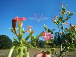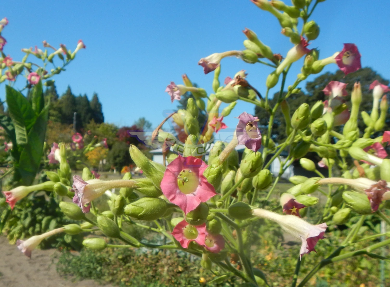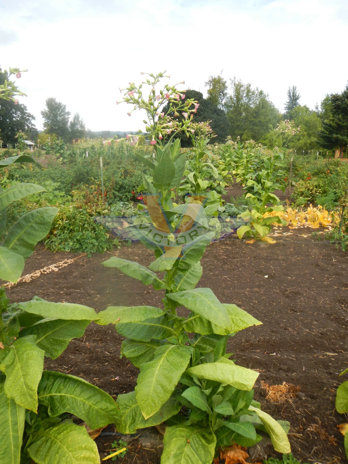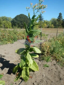 A later maturing variety, ‘Goyano’ is historically used, and classified as cigar “filler.” It was also used as twist tobacco. The plants are pyramidal in shape, grow to about sixty inches tall when topped, or can reach six to seven feet when allowed to flower. Its flowers are an attractive, deep-pink to red color.