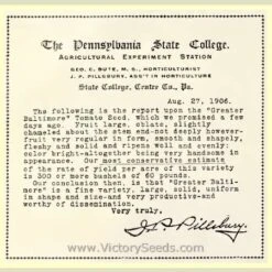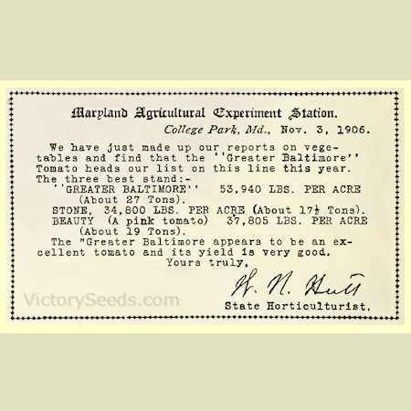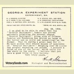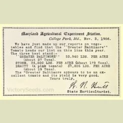 It is reported to have been developed from a single plant selection made about 1900 by John Baer of Baltimore, Maryland. The plant was discovered in a field of Livingston’s ‘Stone’ and discovered to be wilt resistant. It was released by J. Bolgiano & Sons of Baltimore in 1905.[1,4] Each packet contains approximately 20 seeds.