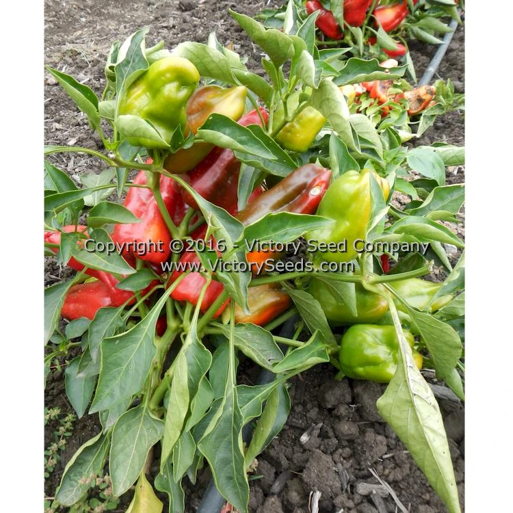 90 days — ‘Hajduczek’ plants are very compact, averaging eleven to nineteen inches in height. The fruit are about three to four inches long, and develop from green, to a deep red color when mature. Quite flavorful and sweet. A very prolific variety for such compact plants.