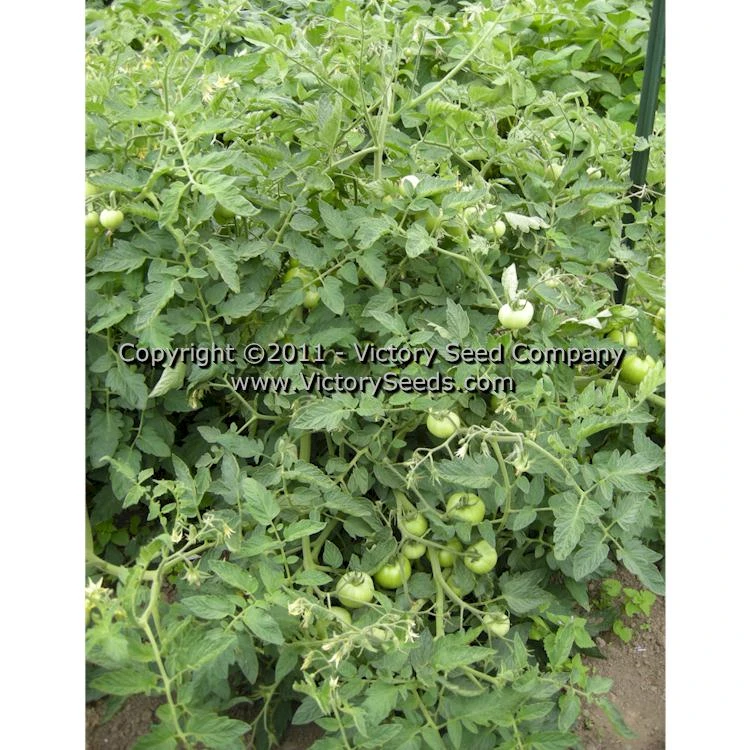 75 days, determinate — ‘Heinz VF’ tomato is an mid-season, whose regular leaf plants produce heavy crops and are resistant to both fusarium and verticillium disease. Its fruit are bright red in color, globe to flattened-globe shaped, crack resistant, weighing three to twelve ounces, averaging about eight ounces each, and with a classic, red tomato flavor. Since it is a determinate variety, the fruit all tend to ripen within a relatively short period of time making it a good processing type tomato.
