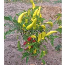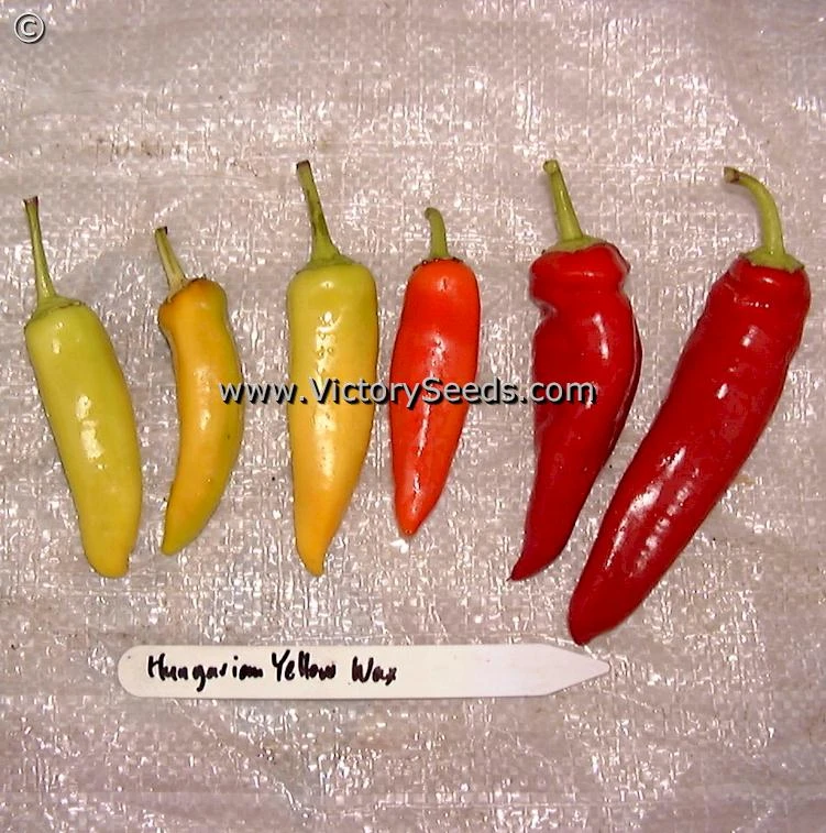 65 days — Some vendors market ‘Hungarian Yellow Wax’ as ‘Hot Banana’ or ‘Hungarian Hot Wax’. The fruit reach five inches long, are tapered, firm, yellow, waxy, and hot. The plants are dwarf, bushy, fourteen to sixteen inches tall, and are quite productive. They are pleasantly hot, not painful, generally reach somewhere between 5,000 and 15,000 Scoville Units, but remain quite flavorful. Each packet contains 0.25 grams, which is approximately 30 seeds.