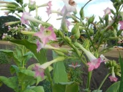 ‘Jamaica’ is classified as a “flue-cured” type tobacco that was historically used for cigarette blending. The plants grows to about forty-four inches tall when topped and reaches about six feet tall when allowed to develop flower heads.