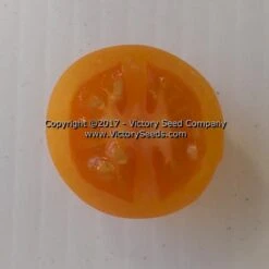 ‘Jaune Flammée’ is an heirloom tomato variety that originated with Norbert Perreira of Helliner, France and introduced commercially in the United States by Tomato Grower’s Supply in 1997. Our seed stock was grown out from seed obtained from the Seed Savers Exchange. Each packet contains approximately 20 seeds.