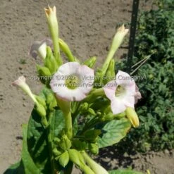 ‘KY Black’ reaches five to six feet tall, has pink flowers, and its leaves are egg-shaped in outline attached to the stalks at the broad end. It was donated into the USDA’s collection in July of 1939 and reported as being collected in Kentucky. Our seed originated from USDA accession number TI 1736 and sent to us by David Pendergrass from Tennessee.