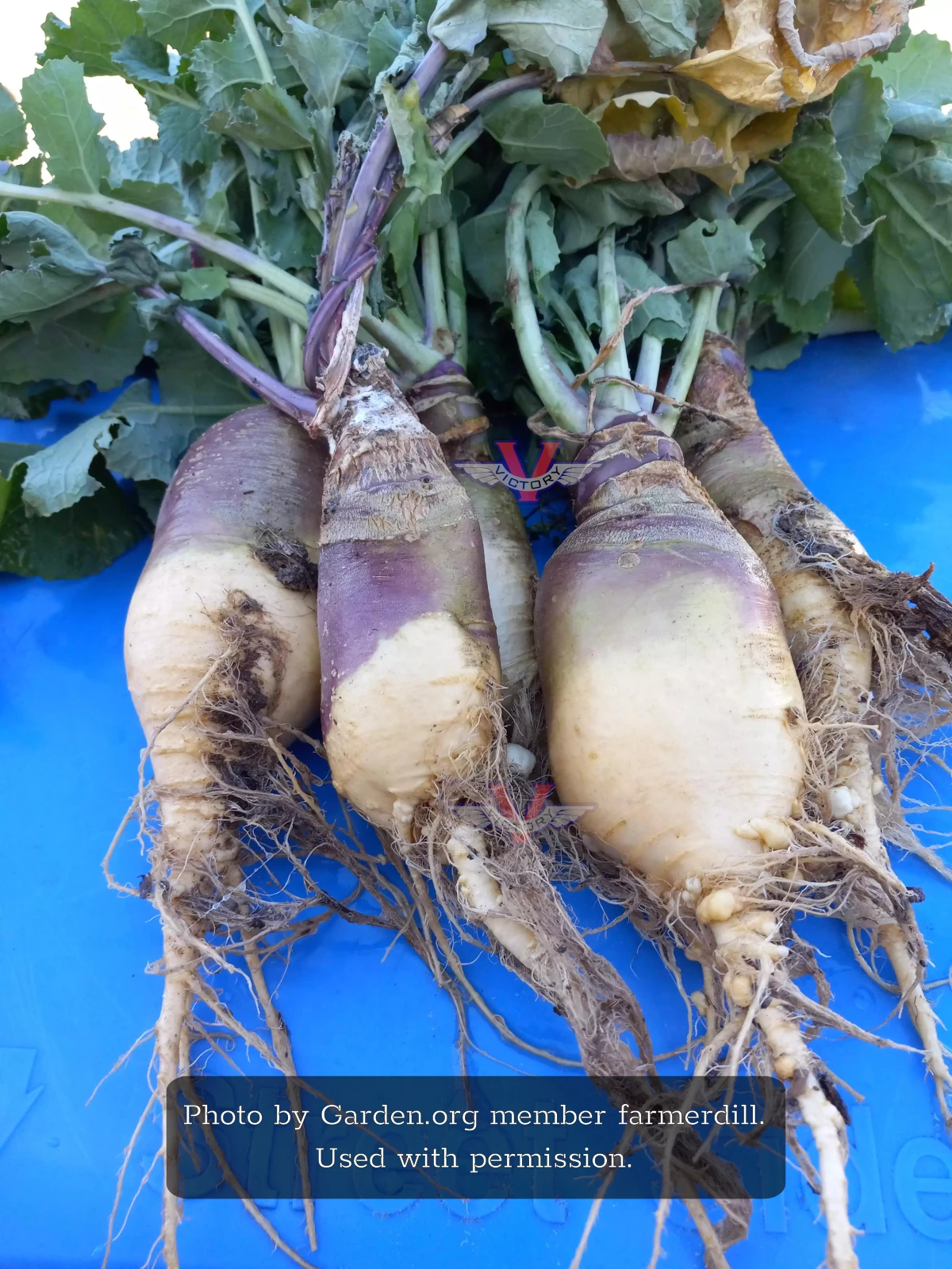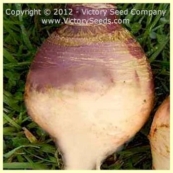 120 days — ‘Laurentian’ is an improved variety of ‘American Purple Top. The roots are large with purple skin at the top and a creamy color at the bottom. The flesh is fine-grained and sweet flavored. They can be boiled and mashed and used as a nice, healthy alternative to mashed potatoes. They can also be added to soups and stews.