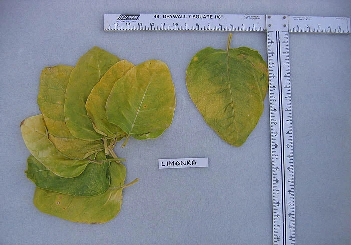Limonka Rustica originated in Eastern Europe and is often called Lemon Rustica. The plants reach about 30 inches in height on average reaching maturity and flowering in 35-40 days. Unlike most other Rustica strains, the leaves of Limonka ripen easily and turn yellow on the plants. This makes it very easy to cure and dry to a bright lemon yellow color. Other Rustica strains are often difficult to cure and dry a dull brown compared to this “Lemon Rustica” strain. The leaves average 7-9 inches in width and 8-10 inches long. The nicotine content of Limonka can range from 6-9% depending on growing conditions and fertilization. Each packet contains about 100 seeds.