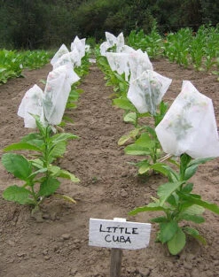 Little Cuba is a small bush like plant that matures very early. Blooms first appear in 28 days. Clipping the blooms will encourage more growth from below and 3-4 new branches will grow up to 3′-4′ high. This will increase the yield of this small Cuban type tobacco and a second bloom will appear at about 60 days. The leaves are between 7″-10″ in width and 10″-14″ long. Leaves appearing before the first bloom will ripen first becoming a mottled yellow with yellow edges. Packet contains about 100 seeds.