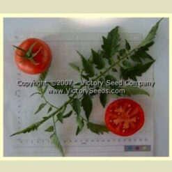 75 days, indeterminate — Originally bred to perform well for market growers wishing to force an early crop of tomatoes “under glass” (in a greenhouse), Livingston’s ‘Ideal’ does equally well in the garden or open field. Its regular leaf plants are strong and sturdy with good leaf coverage. They are indeterminate in nature so do require staking or caging. The fruit are red in color, average six to eight ounces each, are globe-shaped and quite tasty.