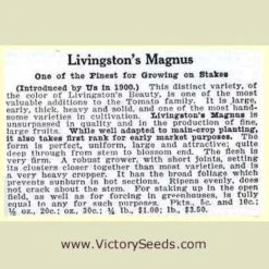 Developed by the Livingston Seed Company, it was introduced in their 1900 seed catalog as follows: