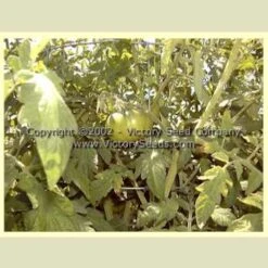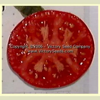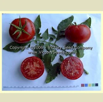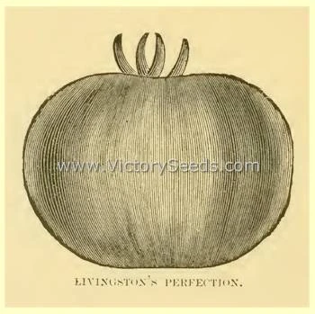 85 days, indeterminate — ‘Perfection’ plants are regular leaf, vigorous and productive. Its fruit are relatively small for modern standards, usually averaging eight to nine ounces each, flattened-globe to oblate shaped, and a deep, bright-red color that Livingston called “blood-red.” The skin is sturdy, allowing it to have been shipped to long distance markets, but not objectionably tough.