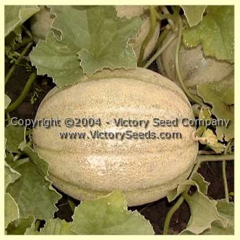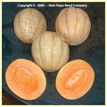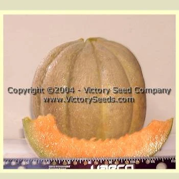 90 days — The fruit are large, averaging six to eight pounds, the shape is round to oblong, distinctly ribbed with moderate to light netting. The flesh is a deep salmon color, very thick and sweet. You can just about eat it down to the outside rind.