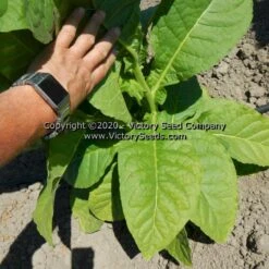 ‘Long Penn Binder’ is a cigar filler-type tobacco. The plants grow to about forty inches tall when topped and up to six feet or more when allowed to develop its pale pink flowers. Its leaves grow to about twelve inches wide by twenty-six inches long, are egg-shaped in outline and attached at the broad end, and have a slightly puckered leaf surface.