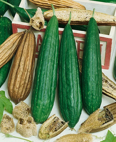 130 days — ‘Luffa Sponge’ gourd is also known as ‘Dishrag Gourd’, ‘Dishcloth Gourd’ and ‘Vegetable Sponge’. The fruit typically reach twelve to fifteen inches long at maturity but can reach thirty inches. When young (under six inches) they are eaten like a summer-type squash. At maturity and after being dried, they can then be peeled, cleaned and used as fibrous kitchen, bath, or exfoliating scrubbers.