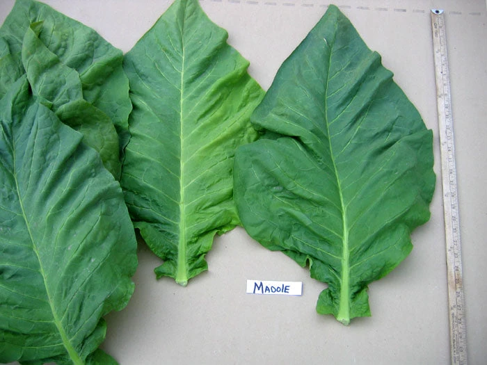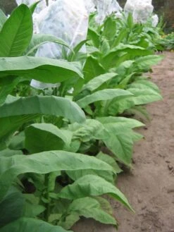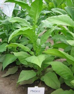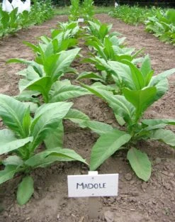 ‘Madole’ tobacco plants grow about five feet tall. Its leaves fire-cure to a dark brown color with a reportedly rich, full flavor, and historically is used for chewing tobacco, snuff, and cigarette blends. Our seed originated from USDA accession number PI 552438 and is grown for us by David Pendergrass from Tennessee.