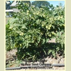 75 days, determinate — ‘Maja’, pronounced as and also sometimes referred to as ‘Maya’, is not a dwarf or tree-type, but it does have a compact (reach twenty-four to thirty-six inches tall), Determinate-type growth habit. Because it is so productive and gets weighted down with fruit, ‘Maja’ will benefit from a good, sturdy basket or stakes to support it. The red colored fruit are salad-sized, averaging one-and-a-half to two inches in diameter making them perfect for snacking and salads. They are also well-suited for canning and using in sauces and soups.