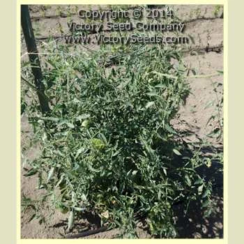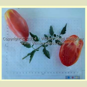 95 days, indeterminate — ‘Malinovyi Rog’ translates to “Crimson Horn” in English from Russian. The wispy, regular leaf plants bear fruit that weigh from three to nine ounces, are pink in color, and elongated in shape. There is quite a bit of variability in fruit size and shape. Some of the first fruit tend to be double-blossomed, large, hearts. An excellent flavored slicer.