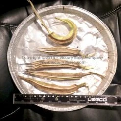 Although here in Oregon, with our cooler and shorter growing season, the plants did not have the opportunity to develop to such heights. However, we can personally confirm that the plants are productive and the pods are spectacular. Our friend, David Pendergrass, grew out our seed stock for us on his farm in Tennessee where it grew six feet tall or larger. Introduced commercially by us in 2017 … 100 years after Mr. and Mrs. Payton received the seeds. Each packet contains two grams, which is approximately 30 seeds.