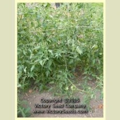 75 days, indeterminate — ‘Orange Strawberry’ vines are lanky and require caging or staking. When growing a production number of plants, we use the Florida weave method with great success. The plants have light, wispy, almost droopy, foliage but this is normal and the plants remain healthy and vigorous.