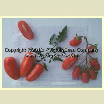 80 days, determinate — ‘Oroma’ is an early maturing, red colored, paste-type tomato that are firm, which makes them easy to both pick and to peel. Keeps well on and off plant. The first fruit of the season tend to be mostly seedless due to their parthenocarpic trait. Bred and introduced by Oregon State University in 1993. Each packet contains approximately 20 seeds.