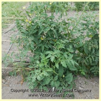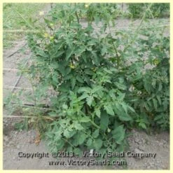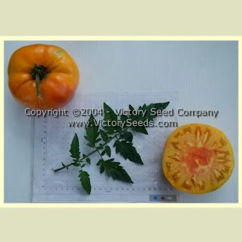 75 days, indeterminate — The vines of ‘Pineapple’ are vigorous, provide great leaf cover for their fruit, and require support. Their oblate-shaped, bi-colored fruit are deep orange mottled with pink that radiates from the blossom end. They can get quite large, weighing between twelve and sixteen ounces each. A very delicious slicing variety.