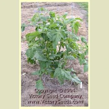 70 days, indeterminate — ‘Pruden’s Purple’ is an old family heirloom with a clouded history. It is a potato leaf variety that yields delicious, large, twelve to sixteen ounce fruit with dark pink skin and crimson flesh. The flavor is nice and balanced between sweet and tart.