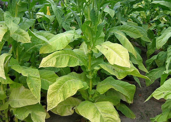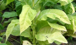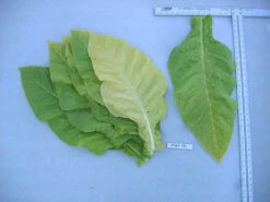 PY KY 171 is a pale yellow breeding line that is agronomicaly comparable to KY 171. It is a dark fire-cured tobacco with high resistance to black root rot, wildfire, and TMV. The plants grow to a height of 5-6 feet to the flower and produce from 14 to 17 leaves per plant. The leaves grow in a semi- erect position, averaging 11-13 inches in width and 24-30 inches in length with good overall yields. Maturity is in 60-65 days. The leaves turn yellow about 4 weeks after topping, whereas, KY 171 stays green making the “PY” strain easier to color cure. Nicotine level by dry weight 5.31% compared to 4.70% for KY 171. Our stock originated from the USDA Nicotiana Collection as accession number PI 578865