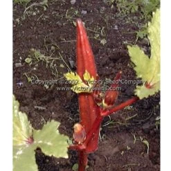 ‘Red Burgundy’ okra was developed by Leon Robbins[1] at Clemson University in South Carolina and introduced in 1983. It was an “All-America Selection®” winner in 1988. Each packet contains two grams, which is about 30 seeds.