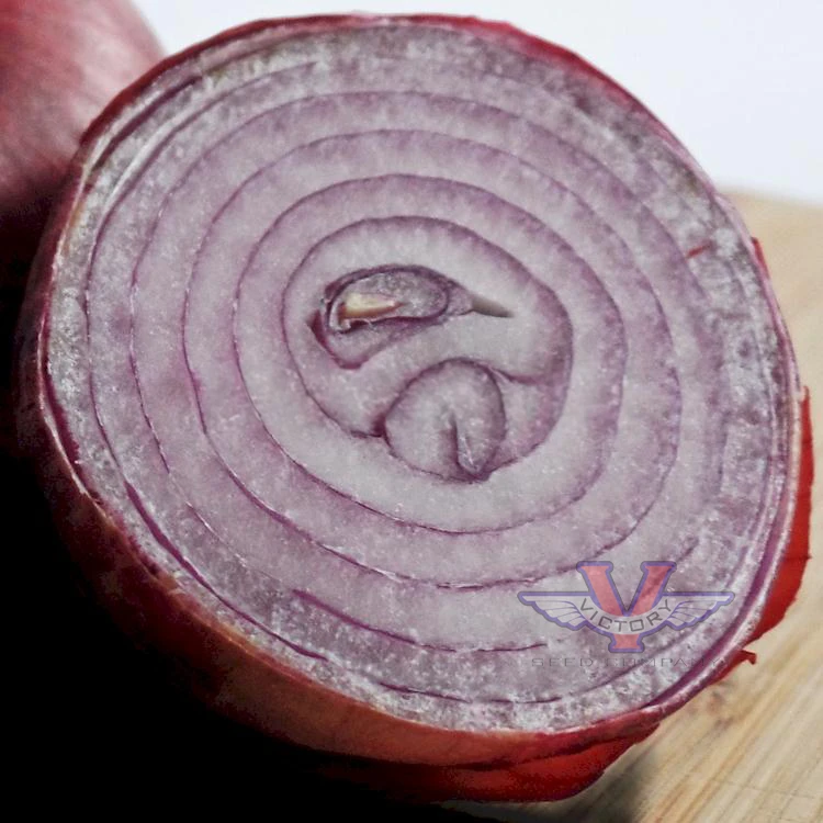 95 days — ‘Red Burgundy’ onions have smooth, glossy skin that is purplish-red in color with flesh that is white with pink shading. In general terms, red onions tend to become more pungent later in the season. When harvested early, for example, they can be sliced fresh and used in sandwiches, to top burgers, and to add color and flavor to salads. Harvested later in the season, they can be cured and do store well if kept in a cool, dry, well-ventilated location. Depending on their pungency, you may still find them suitable for raw uses, but they also roast and grill well.