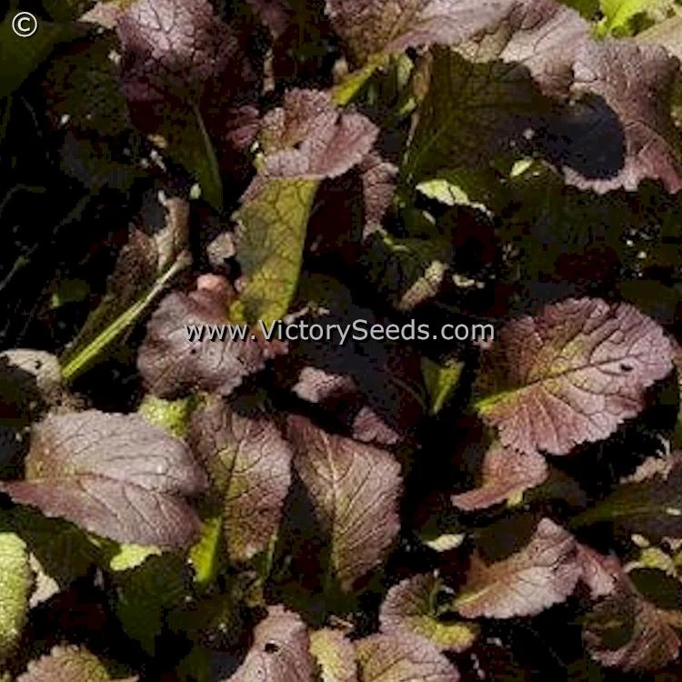 45 days — ‘Red Giant’ mustard plants produce large, tender, deep purplish-red colored, savoyed leaves with a strong mustard taste. It is a slow bolting variety and is very good pickled.