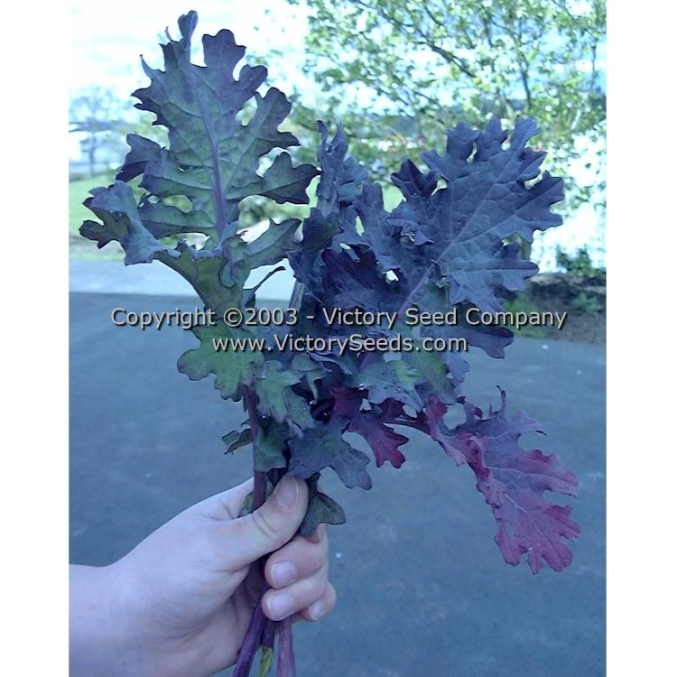 60 days — Once a fairly rare variety only circulated among seed saving gardeners, ‘Red Russian’ kale has become a popular commercial variety. Synonyms attributed to this variety include, ‘Russian Red’, ‘Canadian Broccoli’, ‘Ragged Jack’ and ‘Buda’.[1] Its reddish colored, frilly leaves have purple veins and deliver an excellent flavor. The plants are quite frost tolerant.