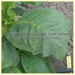 Plants are short, averaging three to four feet, leaf color is a beautiful dark green with a rounded shape resembling old Cuban-types. The leaves cure to a medium tan to light red color. As you can see from the picture, the flowers are beautiful making this variety a great choice as an ornamental plant.