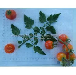 70 days, indeterminate — Not only a beautiful fruit, the taste is equal to that of a really good, full sized red tomato. The plants have heavy foliage with abundant yields. The fruit are nearly perfectly globe shaped, brilliant red, and weigh in the two to three ounce range. It additionally exhibits resistance to Fusarium (race 1), Verticillium wilt, Tobacco Mosaic Virus and Alternaria Stem Canker.