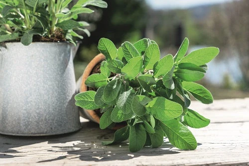 Originating in the Mediterranean region, Sage, also known as ‘Garden Sage’ and ‘Common Sage’, is a small evergreen plant, with woody stems, grayish leaves, and purplish flowers making it an attractive landscape plant. As one of the primary culinary herbs in Western cooking, it is used in recipes to flavor salads, soups, stews, meats and even dressings, vinegar and teas. Sachets of dried leaves placed in closets and drawers discourage moths from clothes and linens.