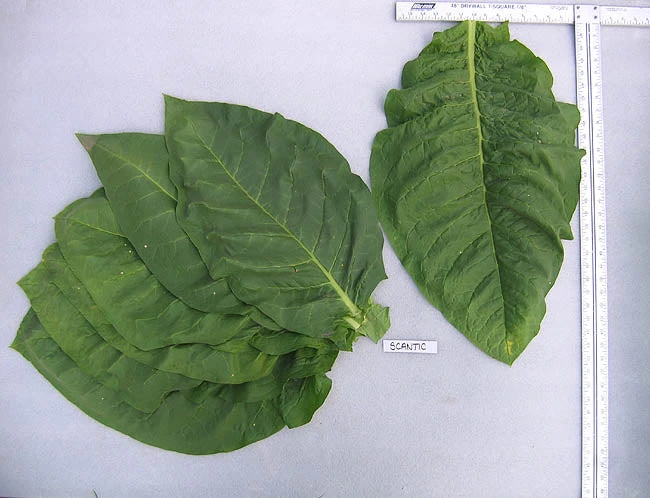 Scantic is a a Connecticut Broadleaf cigar type wrapper tobacco developed with resistance to Fusarium wilt and reduced sensitivity to weather fleck. USDA studies showed over a 20% yield increase in comparison to the current wilt-resistant standard, regardless of whether soils were infested with the pathogen or not. Scantic grows to a height of 5 feet producing 10-12 large heavy weight leaves, The leaves range form 15-18 inches in width and 24-28 inches long. The low height of the plant makes it much more weather and wind resistant than many other wrapper strains. Our stock originated from the USDA Nicotiana Collection as accession number PI 6191633. Each packet contains about 100 seeds.