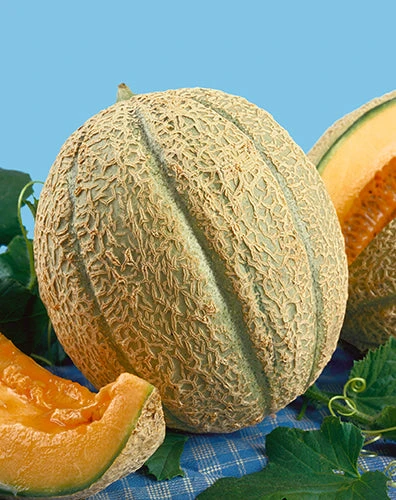 90 days — The fruit of ‘Schoon’s Hardshell’, as its name implies, have a very hard shell, are almost round, and can weigh up to eight pounds each. The flesh is apricot-colored, sweet, and very tasty. Unlike other varieties, they maintain their taste and texture for days after being harvested. This trait, combined with their hard rind, make them a good choice as a fresh market or shipping melon.