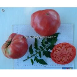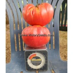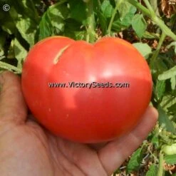 90 days, indeterminate — If you are looking to grow a giant tomato, this old family heirloom is a great choice. ‘Shackelford Giant Pink’ has regular leaf, extremely vigorous, spreading vines that produce remarkably huge crimson-pink colored tomatoes that are variably shaped, very meaty but juicy, and possess a well balanced, mildly sweet, pleasant flavor. Here on our farm in Northern Oregon, the tomatoes were monstrous, ranging in size from one to two-and-a-half pounds each!