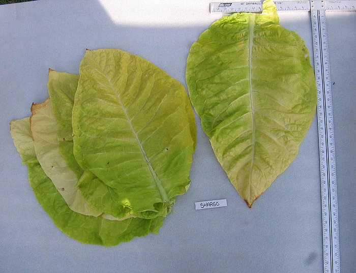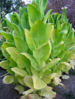 Shargo originated in eastern Europe and is a hybrid cross between a white stemmed Burley and a Turkish strain. It has the vigorous growth and high production of a white stemmed Burley and yellows in the field as it reaches flowering and maturity at about 70 days. It has a spicy flavor more like many Turkish strains. It can be cut and hung whole or primed and strung to cure and dry. The plants grow to 7-8 feet in height to the bloom producing 16-20 leaves ranging from 13-17 inches in width and 24-28 inches in length. Shargo’s unique flavor, heavy production, and early ripening and ease of curing, make it an excellent choice for new and experienced growers alike. Each packet contains about 100 seeds.