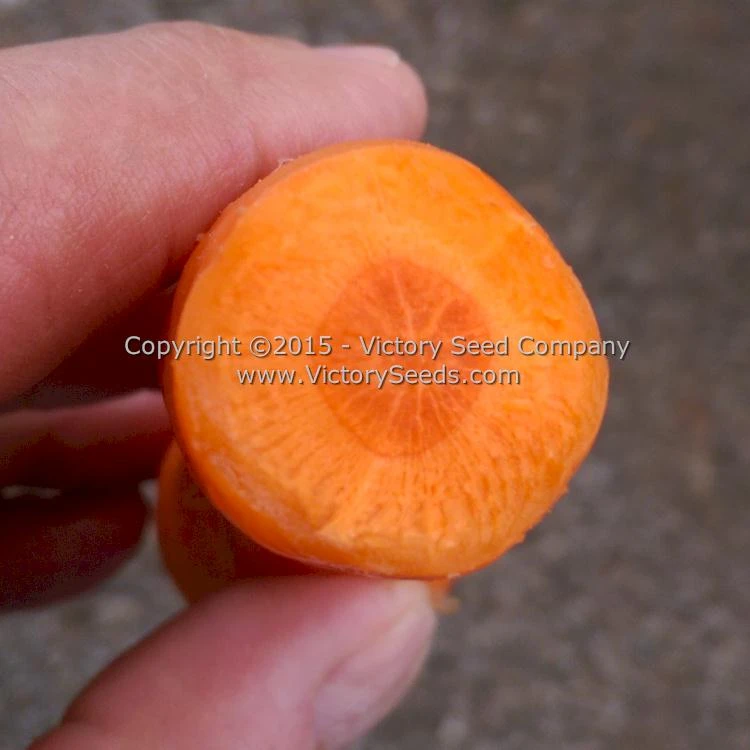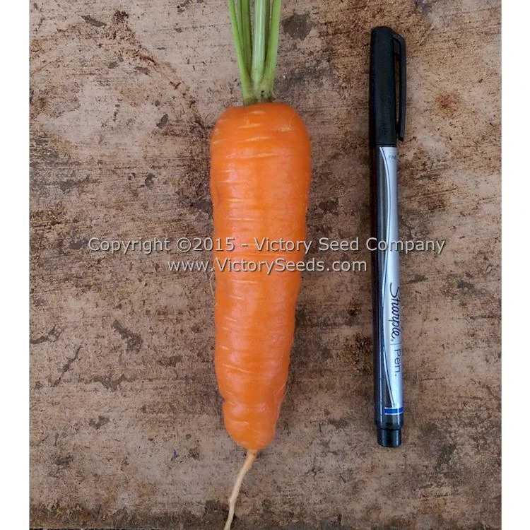 75 days — The bright orange roots of ‘Shin Kuroda’ are five to six inches long, stump-rooted in shape, are tender, and sweet flavored. A popular Asian market variety, they are good for home gardens and excellent as juicer. Does well in wide variety of soils. Very good storage carrot.