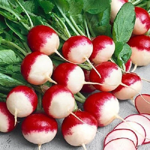 25 days — ‘Sparkler’, also known as ‘Brightest White Tip’ radishes, have bright red skin with a white tip that covers the lower third of the globe. One to one-and-a-half inches in diameter with white flesh that is juicy and sweet. Each packet contains three grams, which is approximately 200 seeds.