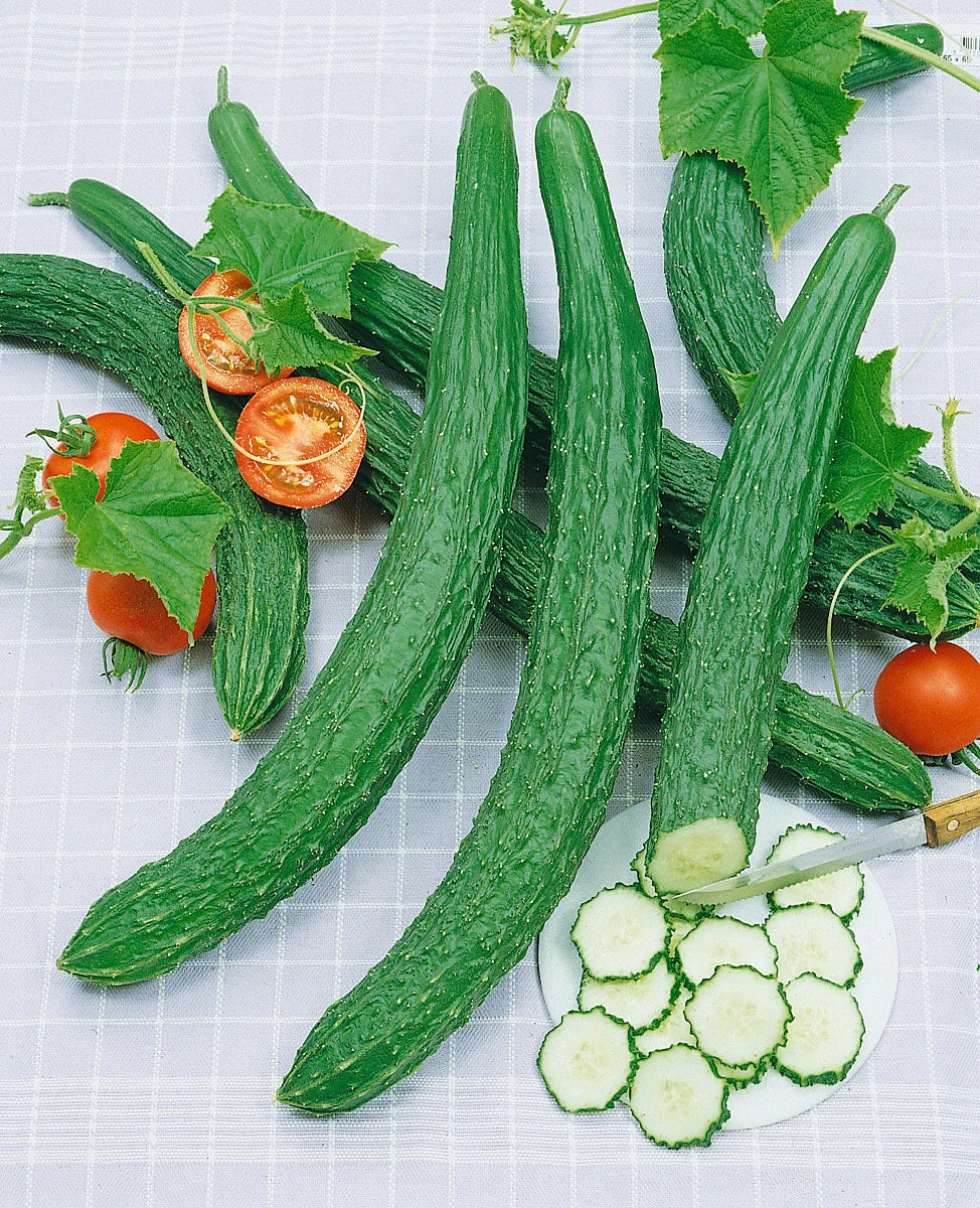 70 days to maturity. Suhyo Long (sometimes spelled Suyo Long) is an Asian cucumber prized for its crisp flesh and flavor. Its fruit can grow between 10 to 12 inches long and are glossy dark green with very few white spines which are easily removed before eating. The plant can be staked to save space and keep the cucumbers straight. Grown on the ground, the fruit tend to curl. Height: 18-24 inches.