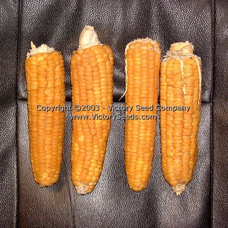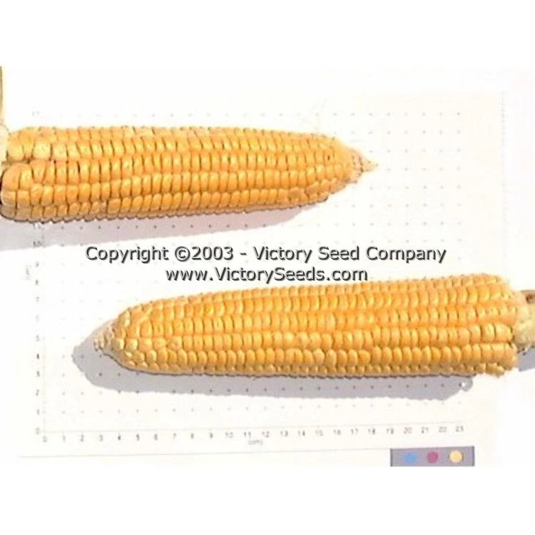 Its stalks grow to about five to six feet in height with ears setting about one foot from the ground. It retains the good, old-time corn flavor of its Golden Bantam parentage but reaches roasting ear stage three to ten days earlier. The ears are six to eight inches long averaging twelve rows of golden yellow kernels.