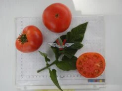Determinate. 90 days, dwarf — The vigorous, dwarf, rugose, potato leaf plants produce a heavy yield of medium to medium large sized (six to sixteen ounces) oblate, smooth red fruit, possessing a superb, intense, complex flavor – one of the very best flavored of all of the “Dwarf Tomato Project” varieties. Due to the challenge of stabilizing the dominant tomato color (red), don’t be surprised if you find an occasional plant producing yellow or orange fruit; be sure to try them, because they will likely be just as delicious.