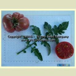 80 days, dwarf — ‘Tennessee Suited’ is a vigorous, rugose, regular leaf variety that produces fruit that are a rich purple color (clear skinned black) with green stripes. They are medium-sized (four to ten ounce), smooth, oblate in shape, very juicy and tender with a delicious, well-balanced flavor that is neither too tart or too sweet. It should be noted that there is some variability in shape, with some fruit being deeply lobed. As with any thin-skinned pink/purple variety, the fruit are somewhat prone to radial cracking if exposed to wet weather conditions.